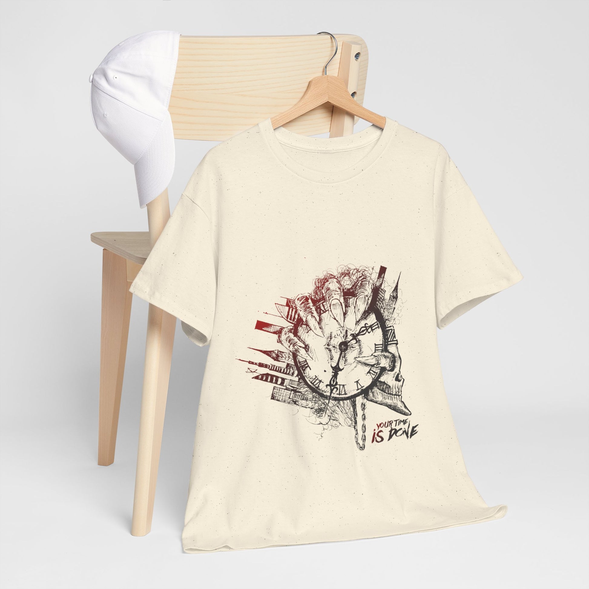 YOUR TIME IS DONE Skull Graphic Tee - Claw Hand Clock Print
